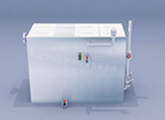 油水分离器主要由出渣箱、油水分离箱、废水强排箱等主要部分组成,原理是含油污废水首先流入出渣箱,出渣箱内将其中的固体杂物排放出来,经过过滤后的含油污水进入油水分离箱,利用油和水的比重不同,油水分离箱内配有整流板、导流板、缓冲板及积油区,箱内的各种挡板间距、角度、方向都是最合理的配置,实现最合理的出油方案,已申请国家专利。过滤掉的残渣和油污的达标水直接流到强排箱内,由污水泵排至市政管网。