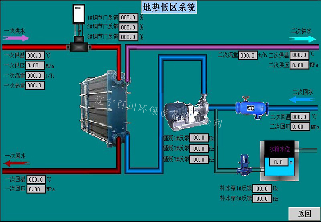 1) 变频补水定压:设定系统补压力,调节补水变频设备,保证系统回水压力稳定