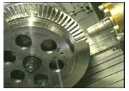 实例一 工件 钛合金风扇叶盘: 外径800 mm / 型面宽度150 mm 表面质量/型面公差要求:Ra 0.63 um,+/- 0.1 mm 毛坯:圆柱实心体 机床 g-Mill 1150 加工时间 90小时 |
